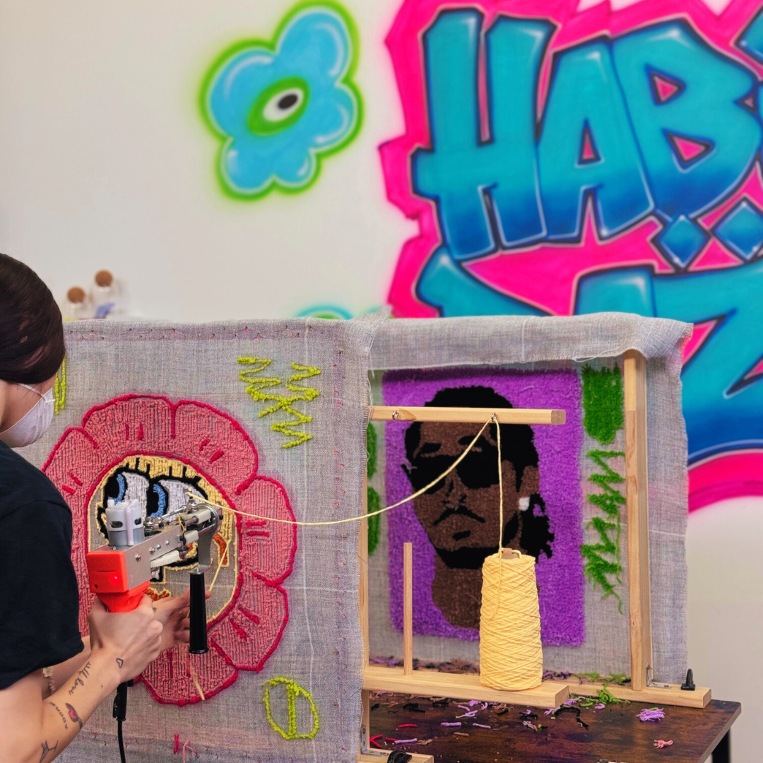 These memberships will allow you to tuft creations on your own time on our 2.5 x 2.5 feet tufting frames, with access to our studio, materials, and expert tufters. You will have full access to our lounge, tufting materials, and studio Monday- Thursday from 10 AM to 9 PM. We are offering 3-month minimum memberships, with two options to choose from that fit your tufting goals and creative ideas!